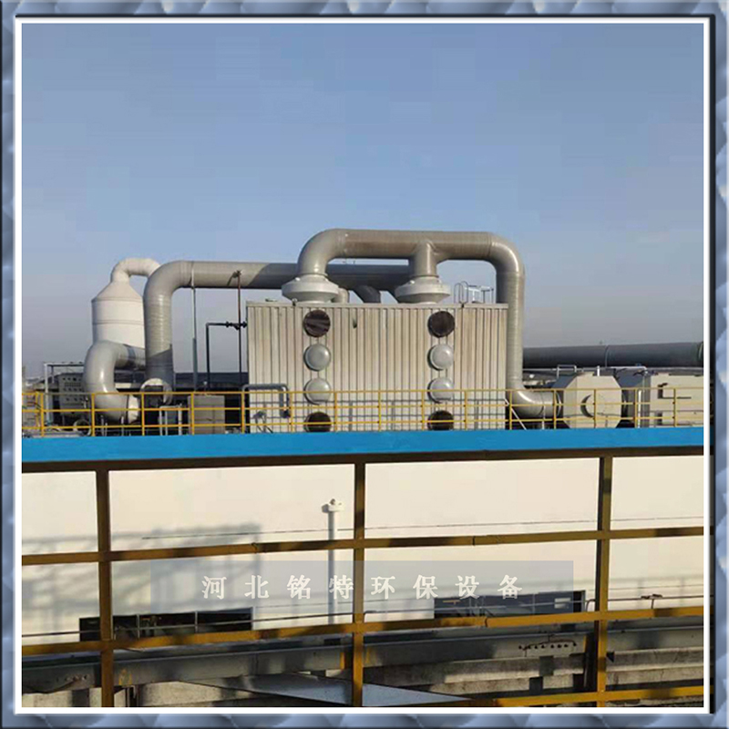 当含有气、液、固三项混合的有毒、有害、有恶臭的废气经收集管道导入本系统后通过培养生长在生物填料上的微生物菌株形成的生物膜来净化和降解废气中的污染物。